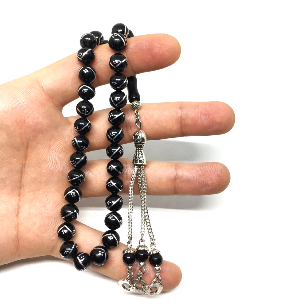 Zikzak ve Nokta İşlemeli Gürcistan Taşı Tesbih