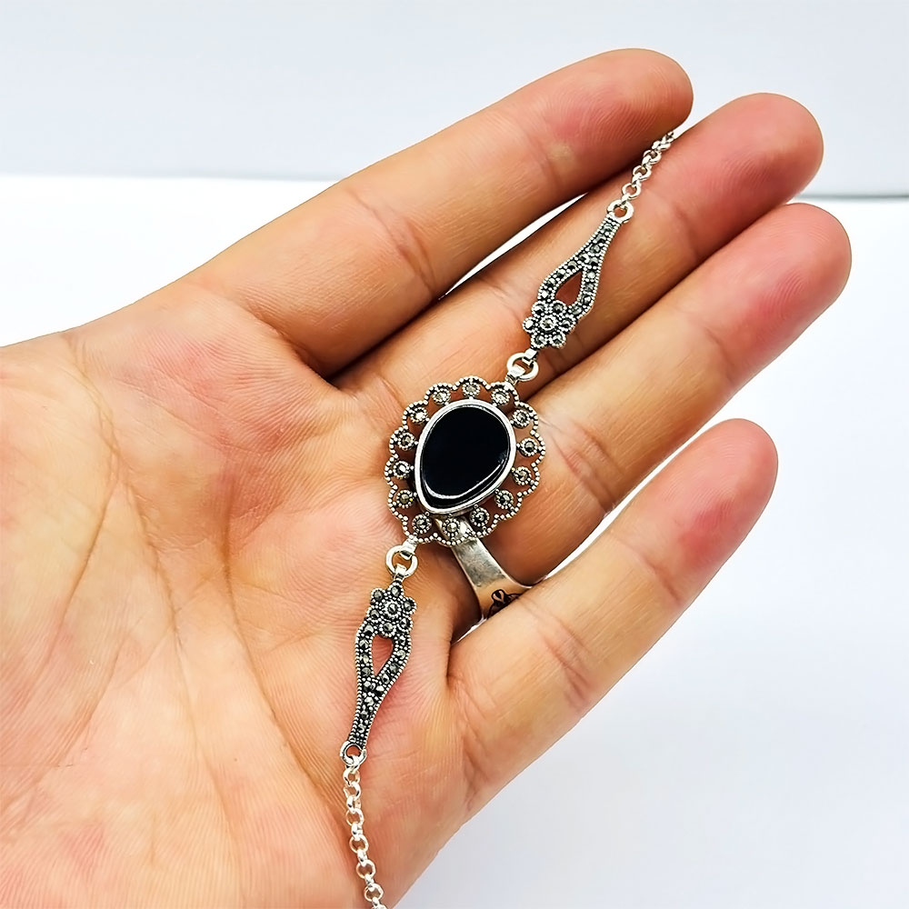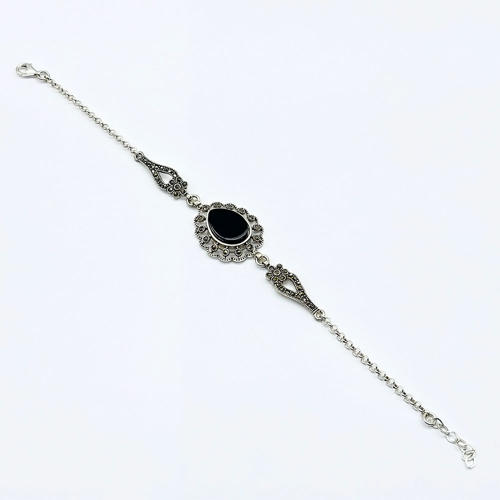 Zirkon Damla Model Oltu Taşı İşçilikli 925 Ayar Gümüş Bileklik