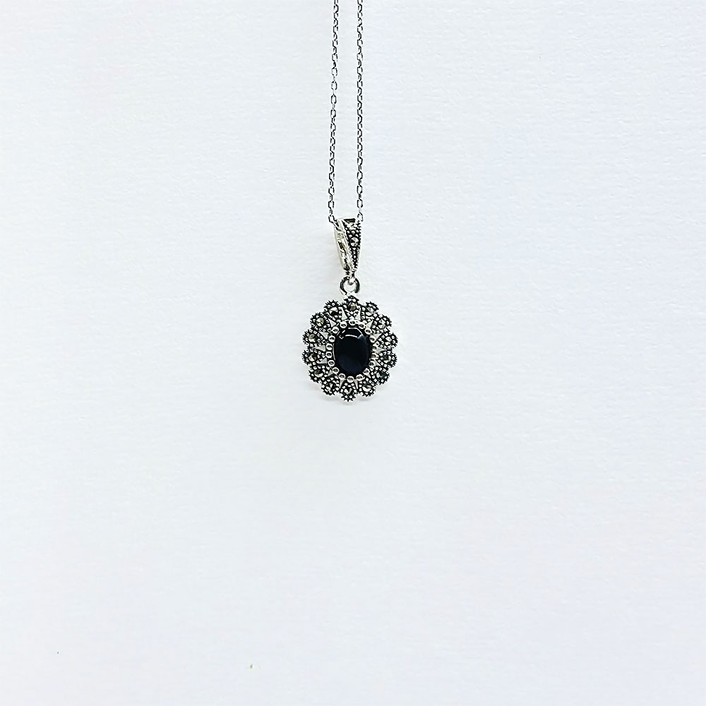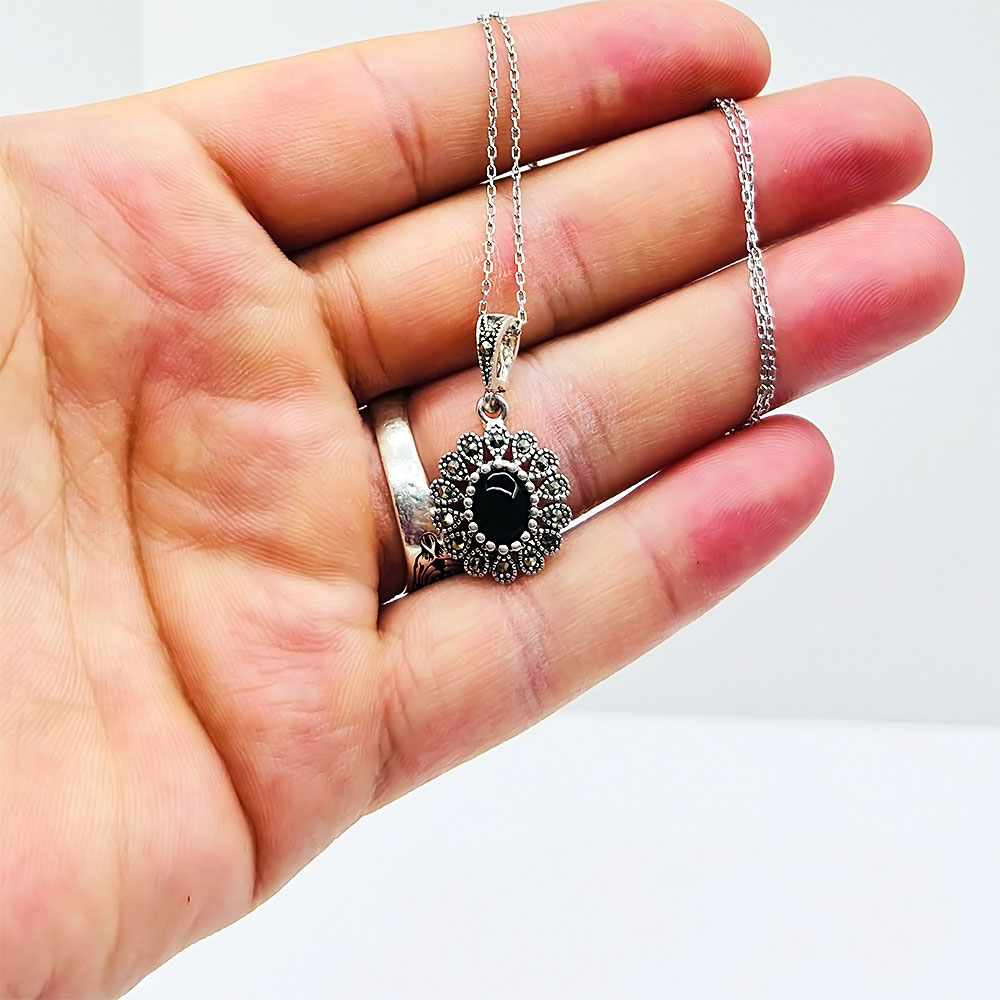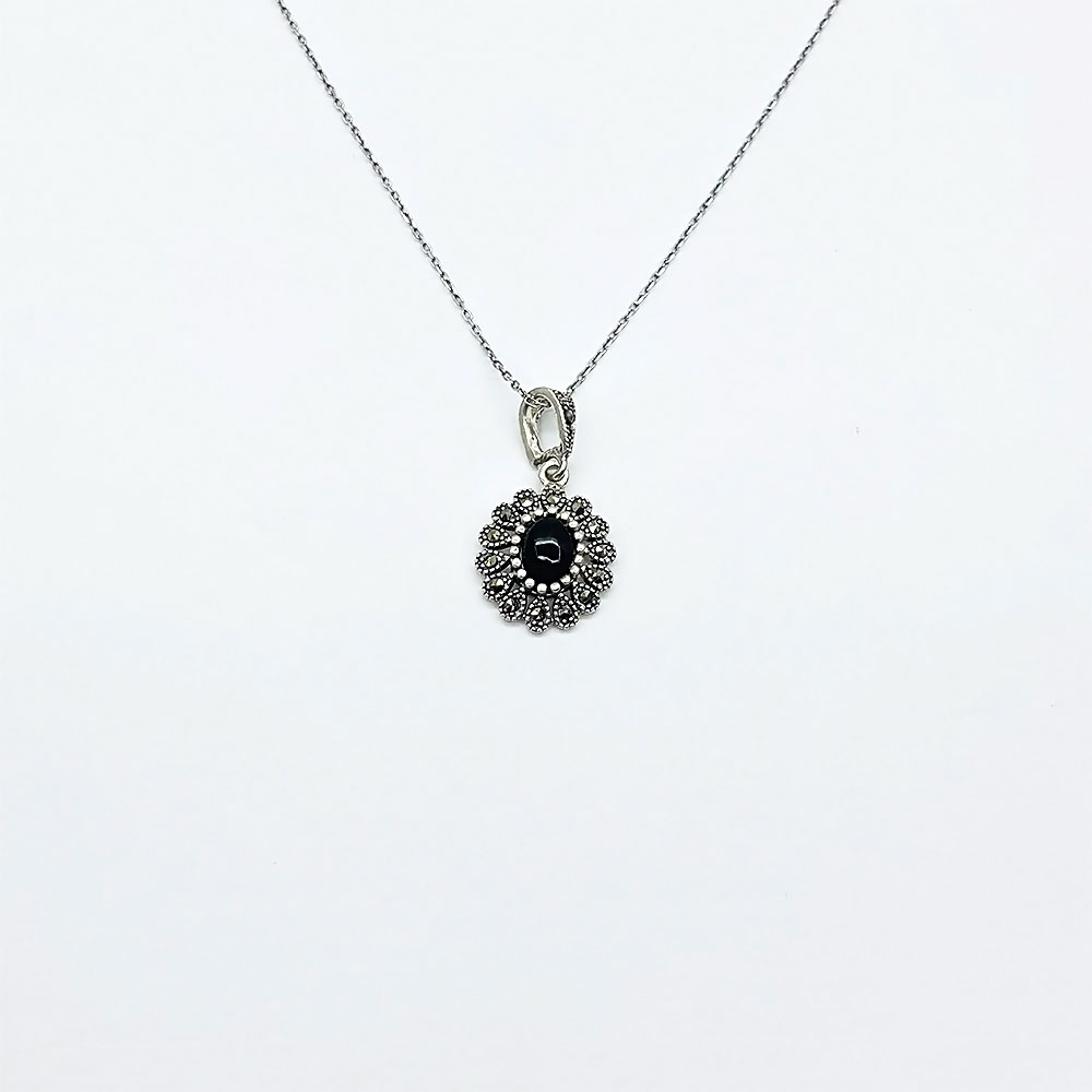 Zirkon Damla Model Oltu Taşı İşçilikli 925 Ayar Gümüş Kolye