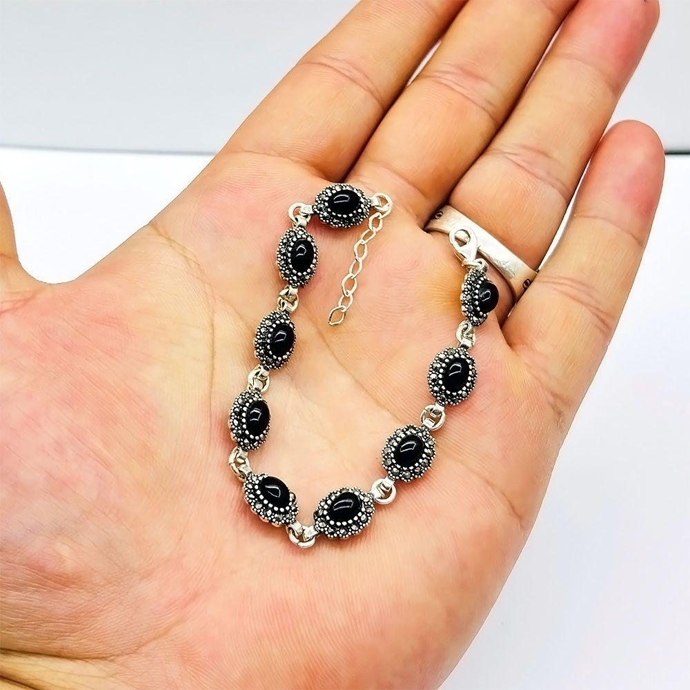 Zirkon Oltu Taşı İşçilikli 925 Ayar Gümüş Bileklik