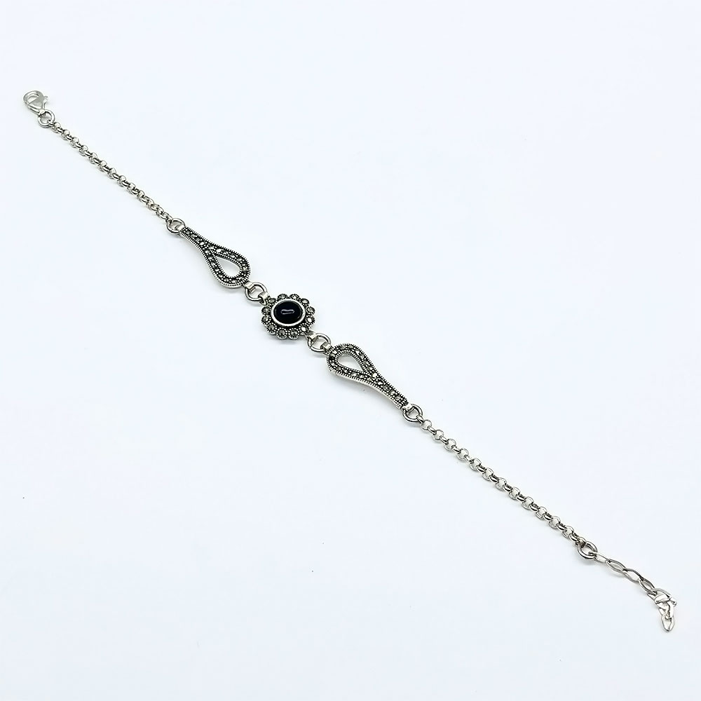 Zirkon Oltu Taşı İşçilikli 925 Ayar Gümüş Bileklik