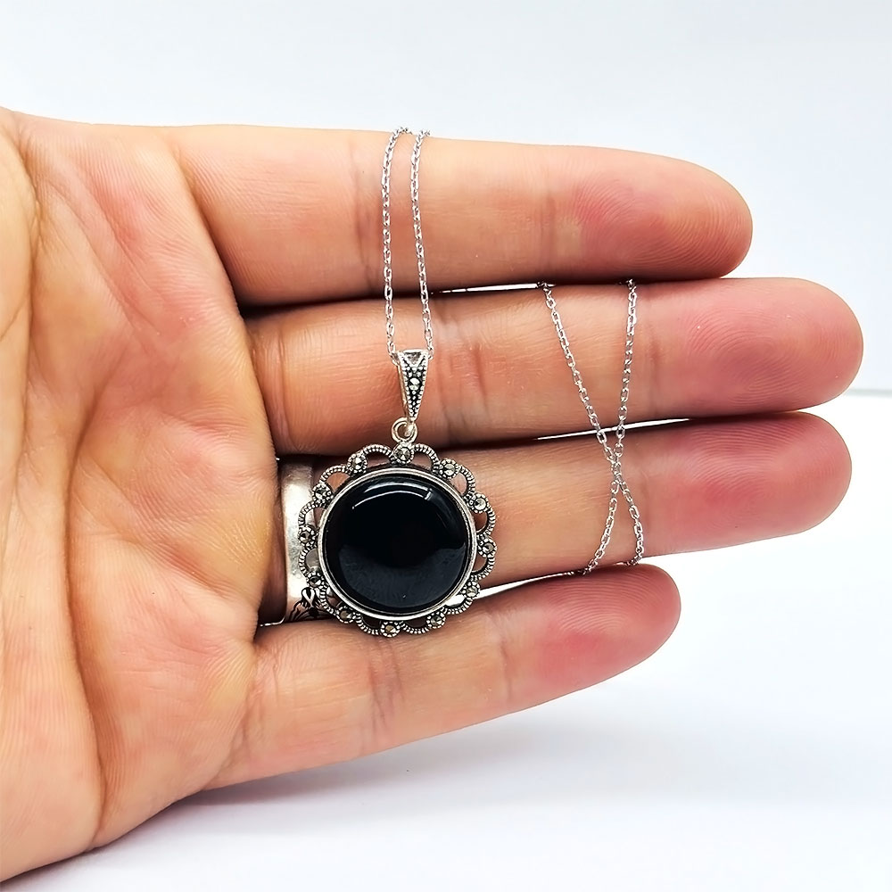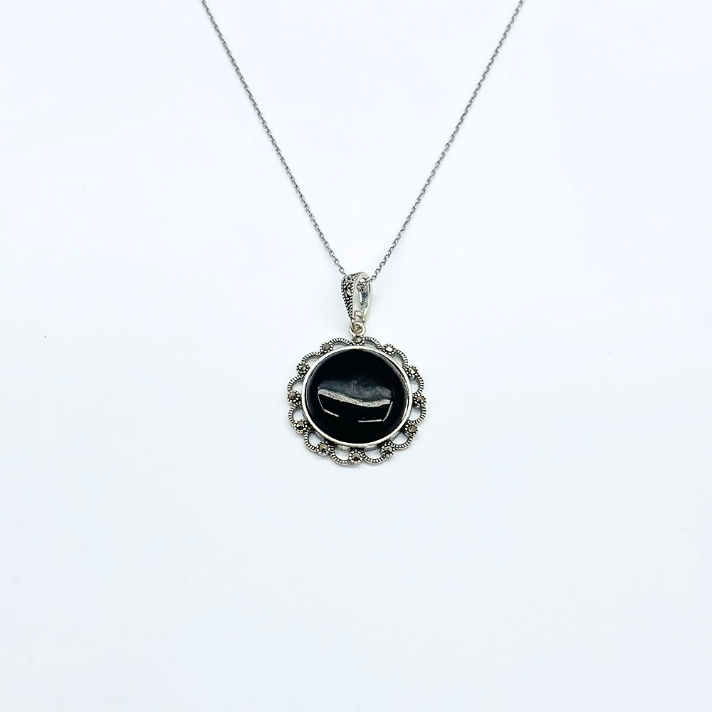 Zirkon Oltu Taşı İşçilikli 925 Ayar Gümüş Kolye