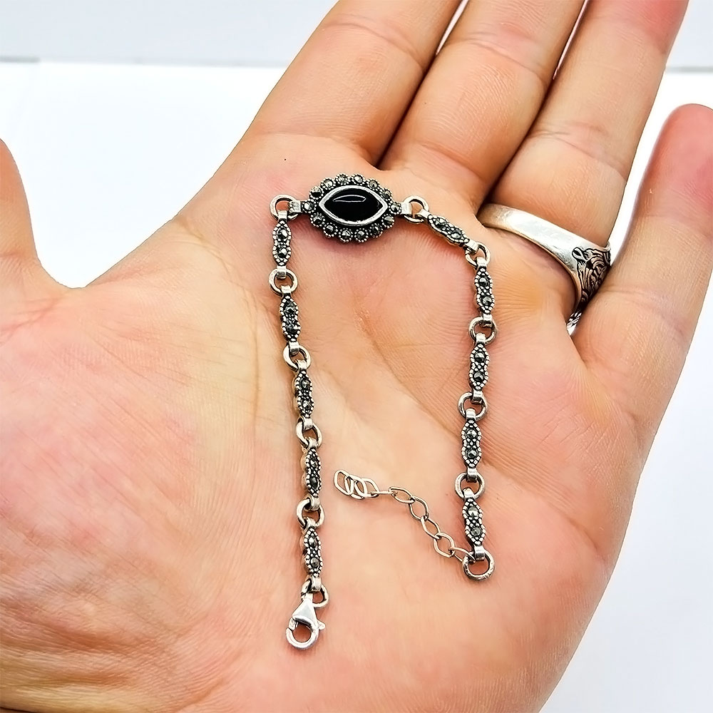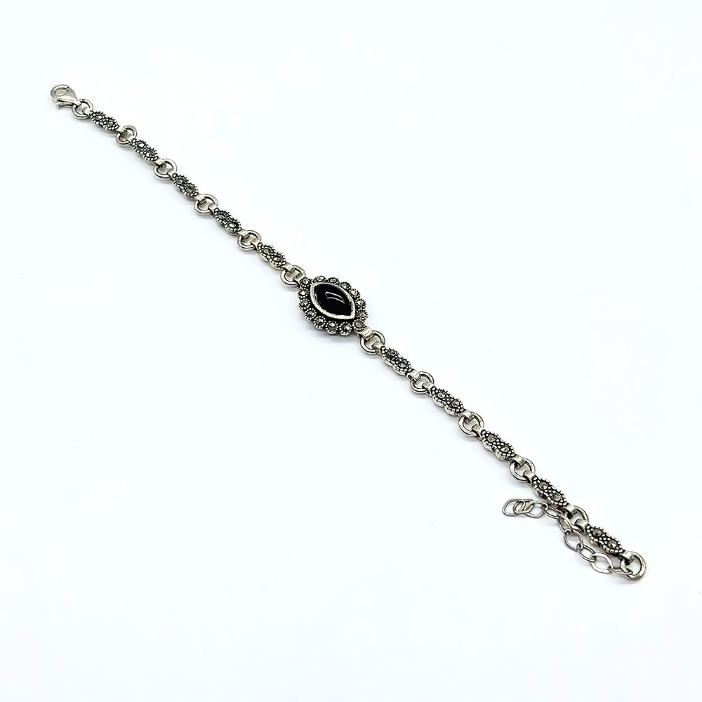Zirkon Ve Oltu Taşı İşçilikli 925 Ayar Gümüş Bileklik