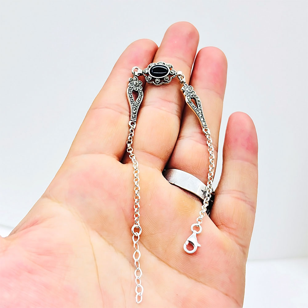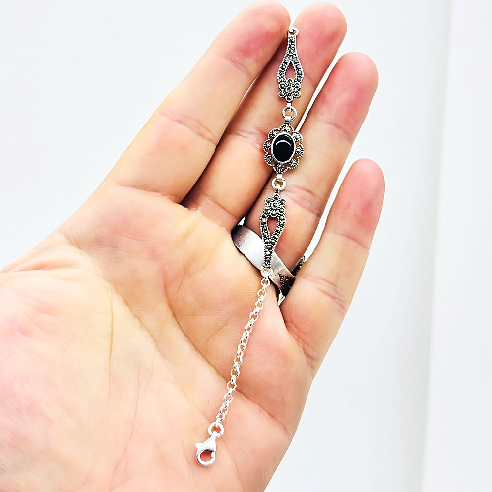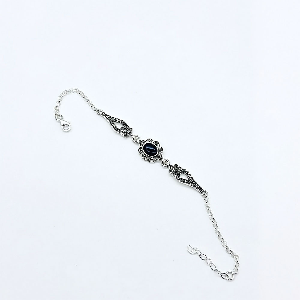 Zirkon ve Oltu Taşı İşçilikli 925 Ayar Gümüş Bileklik