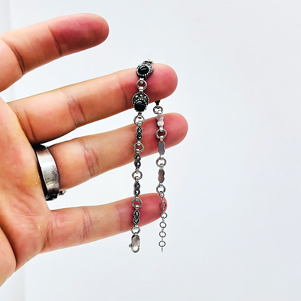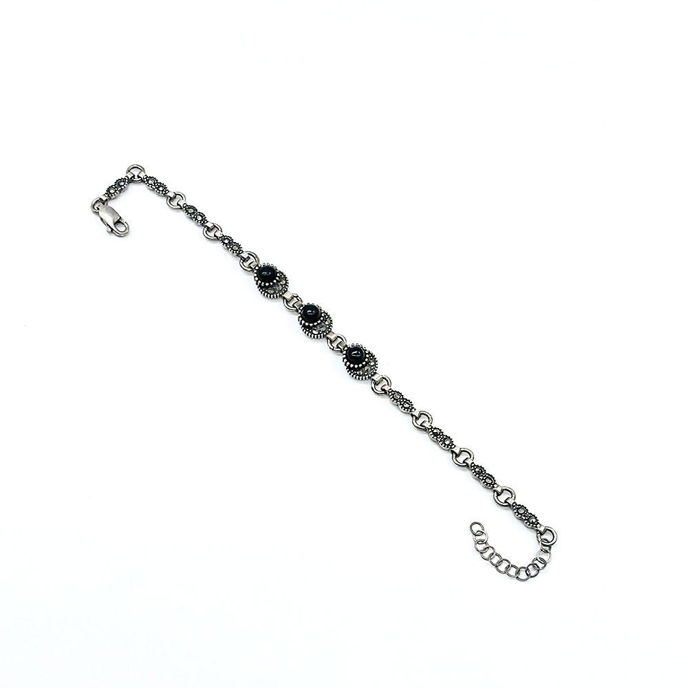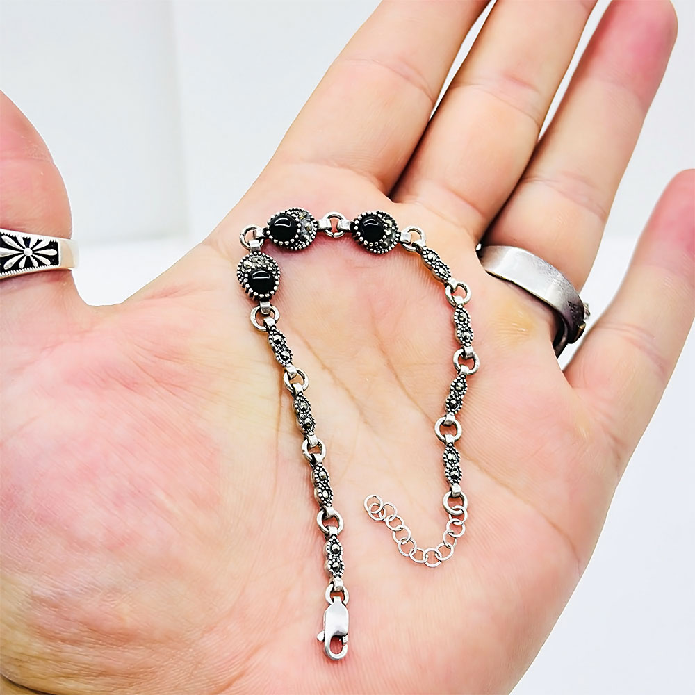 Zirkon ve Oltu Taşı İşçilikli 925 Ayar Gümüş Bileklik