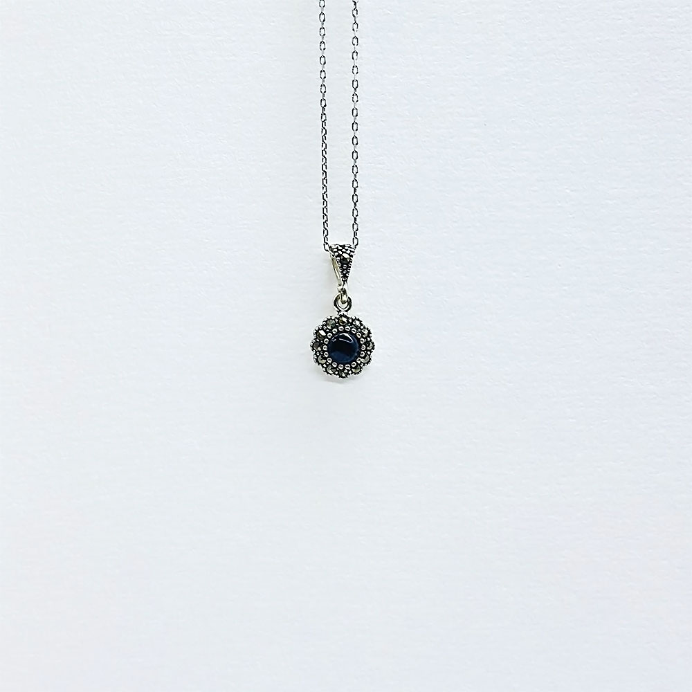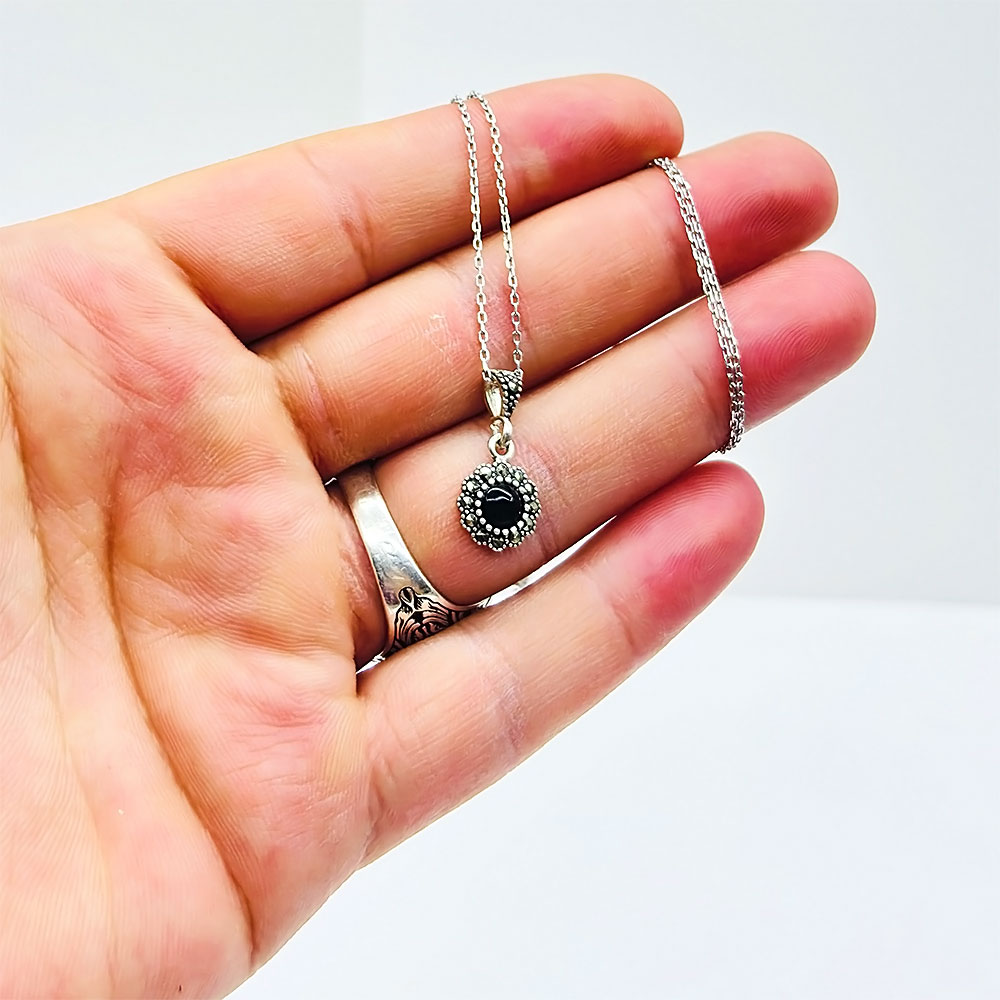 Zirkon ve Oltu Taşı İşçilikli 925 Ayar Gümüş Kolye