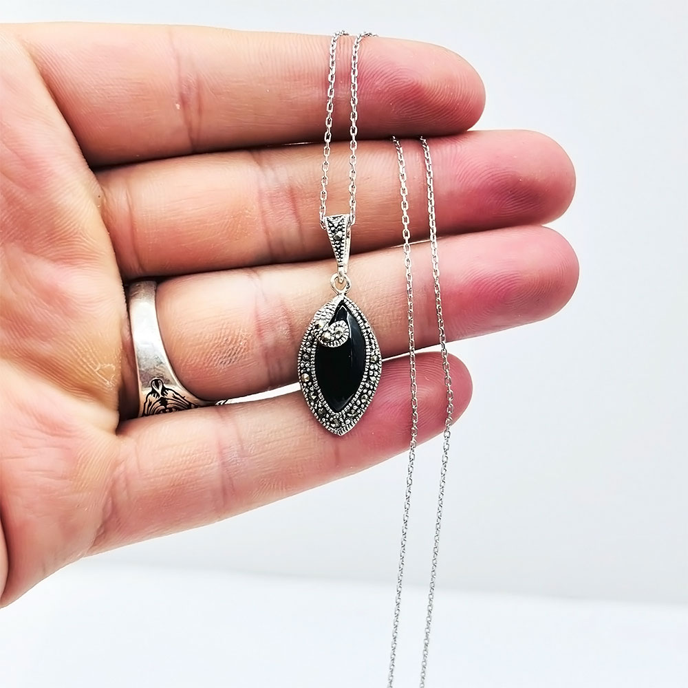 Zirkon ve Oltu Taşı İşçilikli 925 Ayar Gümüş Kolye